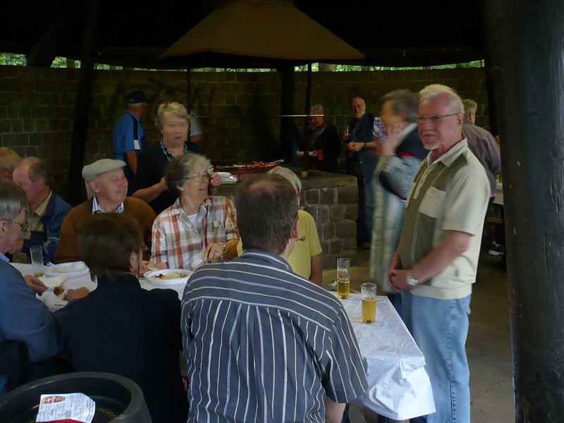 Es waren 50 Seniorinnen und Senioren gekommen. Das Wetter hat für uns alle mitgespielt, kein Regen es kam sogar die Sonne heraus. Die Grillhütte war von einigen Helfern zurecht gemacht, und für die Wanderer gab es bei der Ankunft Essen und Trinken. Eine nette Stimmung war vorhanden.