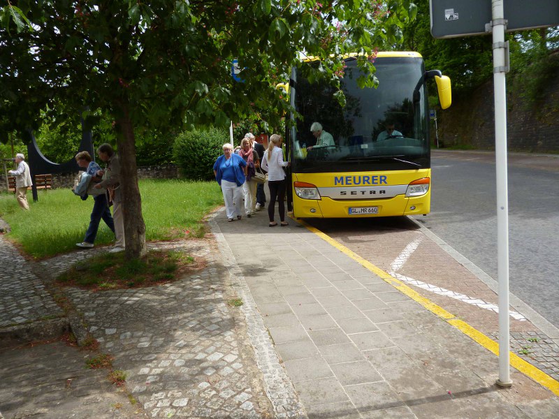 So konnte man dann den späteren Treffpunkt für die Teilnehmer einzeichnen, damit sie zur Abfahrtzeit um 15:30 Uhr am Treffpunkt pünktlich erscheinen konnten. Es klappte wie gewohnt, alle waren pünktlich, was den Busfahrer eigentlich verwunderte. Bei anderen Fahrten, wie er sagte, muß er häufig länger warten oder die Teilnehmer irgendwo abholen.