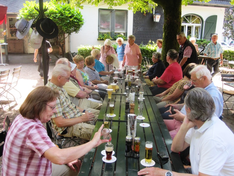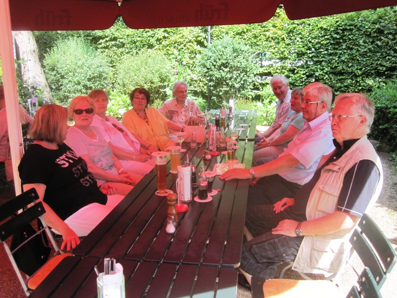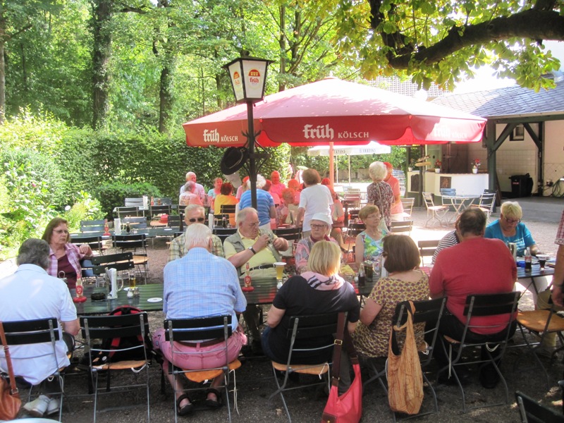 Die Wetterfrösche hatten schönes Wetter vorhergesagt und so trafen sich 23 Wanderer am Donnerstag, den 06.08.15 an der Endhaltestelle der Linie 18 in Thielenbruch. Gut gelaunt machten wir uns auf den Weg und folgten einem Teil des Kölnpfades. Unser Ziel war das Restaurant „12 Apostel“ in Refrath, auch Kickehäuschen genannt. Nach etwa einer Stunde kamen wir dort an. Wir wurden schon vom Seniorenbeirat erwartet. Nach und nach trafen die übrigen Teilnehmer der Veranstaltung, die nicht mit gewandert sind, in dem Restaurant ein. Am Ende waren es 46 Teilnehmer.