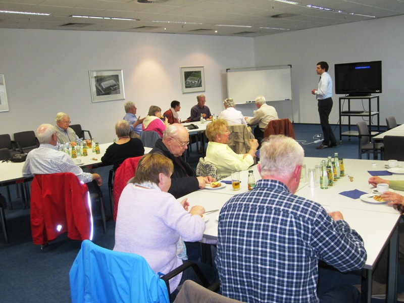 Wie kommen die Medikamente in die Apotheke. Dieser Frage ging der Kulturkreis am 14.04.2016 nach. An dem Tag besichtigte eine Gruppe von 16 Teilnehmern die Firma NOWEDA im Frechener Gewerbegebiet. Zunächst wurde die Gruppe freundlich von dem Mitarbeiter der Firma in Empfang genommen. Während des Vortrags über die Firma gab es Kaffe und Teilchen. Eine schöne Geste der Gastgeber.