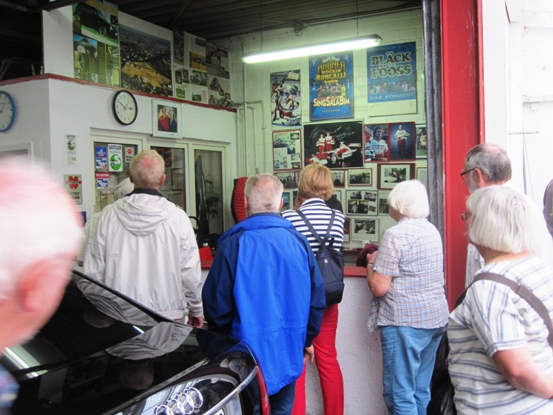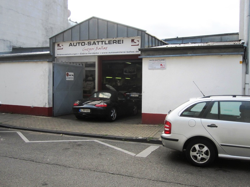 Herr Ballas empfing uns am Eingang zu seiner Werkstatt und erzählte uns etwas über die Historie der Autosattlerei Ballas. Sein Vater gründete die Firma 1963 in der Vietorstraße, gleich um die Ecke, in einer kleinen Werkstatt. Am Anfang wurden im väterlichen Betrieb auch Arbeiten an Planen und Zelten durchgeführt. Er, Gregor Ballas, begann 1968 im väterlichen Betrieb seine Ausbildung und blickt auf fast 50 Berufsjahre zurück. Der Umzug in die Peter-Stühlen Str. erfolgte 1971.