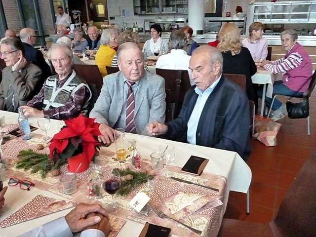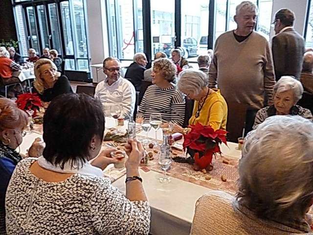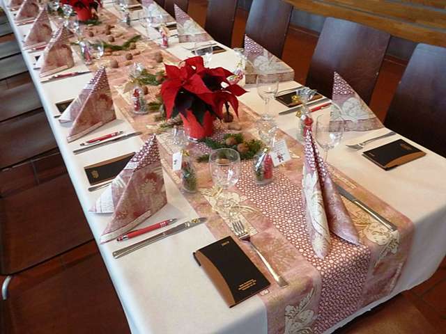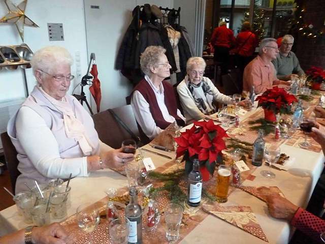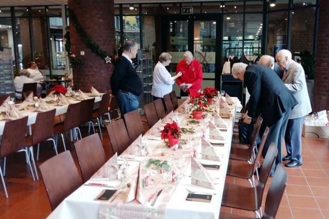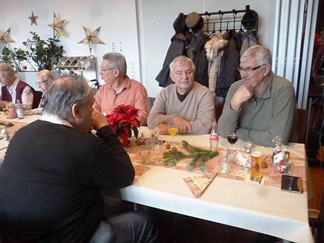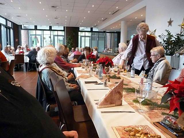 Der Saal war sehr schön weihnachtlich dekoriert und die Tische nett hergerichtet. Für jeden Teilnehmer lagen kleine Geschenke auf den Plätzen bereit. Nach der Begrüßung servierten die Bediensteten des Lokals das Essen. Ein Nachtisch durfte nicht fehlen. Nun wurde viel erzählt und die Zeit verging wie im Fluge.