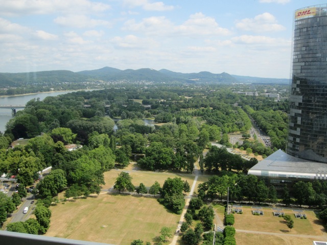 Zum Abschluss wurde die Gruppe noch auf den 29. Stock geführt. Von hier hatte man einen tollen Blick über die Stadt und die Umgebung. Eigentlich sollte auch der ehemalige Bundestag besichtigt werden, aber eine Veranstaltung machte uns einen Strich durch die Rechnung.