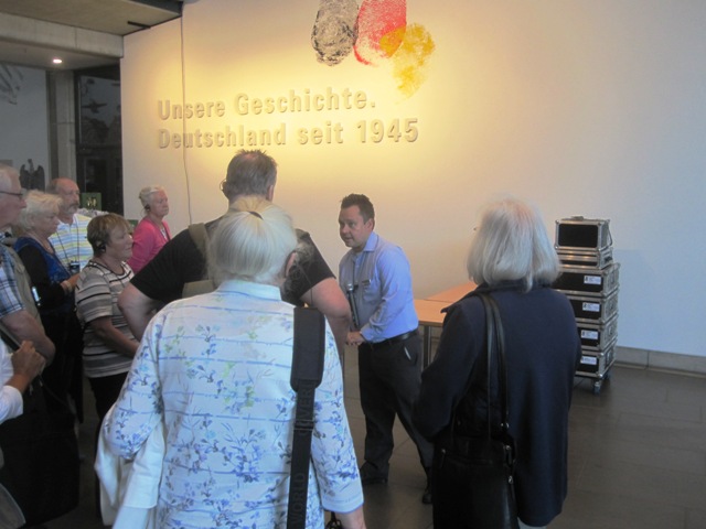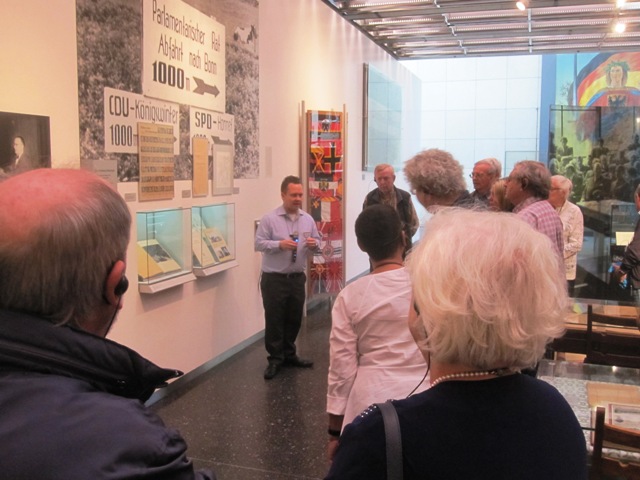 So stand als Ausgleich noch eine Führung im Haus der Geschichte an. Ein kundiger wissenschaftlicher Mitarbeiter erwartete uns bereits im Foyer und führte uns zu verschiedenen Schwerpunktthemen in der aktuellen Ausstellung. Da die Ausstellung immer wieder umgestaltet wird, machte es auch nichts, wenn man das Haus der Geschichte schon mal besucht hat. Unser Begleiter verstand es durch geschickte Fragen und Anmerkungen unser Interesse zu wecken und neue Blickwinkel auf die Geschichte unseres Landes zu werfen. Dabei kamen ganz neue Aspekte zum Vorschein. Die 90 Minuten vergingen jedenfalls wie im Flug.
