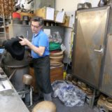 Hüte herstellen ist ein heißes Handwerk. Der Stoff ist heiß und dampft. Im Hochsommer wird es in der Werkstatt über 40° C warm. Dann wird die Arbeitszeit auf 4 Uhr vorverlegt.