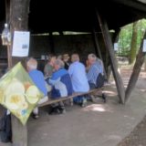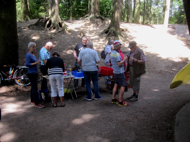 Wie üblich machten sich die Teilnehmer auf verschiede Weise auf den Weg nach Bensberg. Einige wanderten bei schönem Wetter unter der Führung von Günter Mahlberg von der KVB-Haltestelle Thielenbruch aus zur Saaler Mühle. Andere kamen per Straßenbahn oder Auto direkt zur Grillhütte nach Bensberg. Die Grillkohle war schnell angezündet und die ersten Würstchen und Fleischstücke brutzelten auf dem Grillrost vor sich hin. Auch der Kartoffel- und der Krautsalat sowie die übrigen Beilagen standen bereit und fanden regen Zuspruch bei den Gästen. Für Getränke wie Bier, Wasser, Limo und Kaffee war ausreichend gesorgt. Da das Wetter mitspielte brauchten wir diesmal keinen Pavillon für die Getränke.