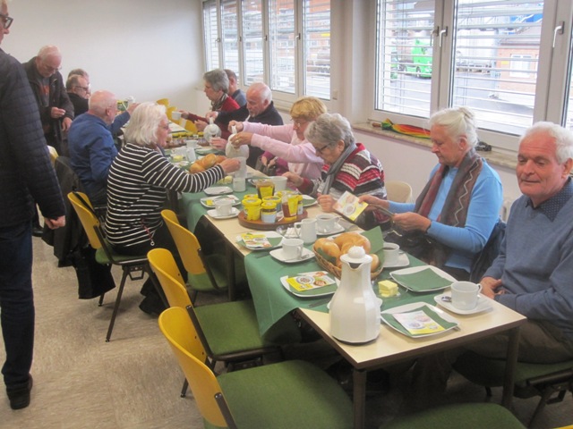 Nach dem Rundgang gab es in einem Vortragsraum zunächst eine Kostprobe der verschiedenen Produkte der Firma Grafschafter zusammen mit Kaffee und Brötchen. Ein Imagefilm rundete das ganze ab. Am Ende der Besichtigung konnte man natürlich im Verkaufsraum auch noch die Produkte erwerben, was viele dann auch taten. Insgesamt eine gelungene Veranstaltung.