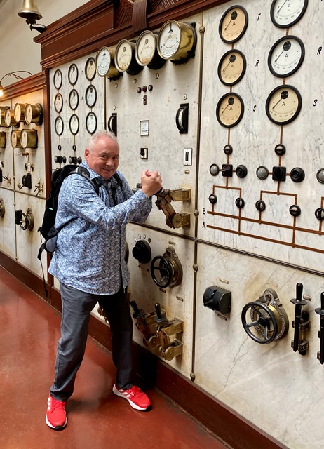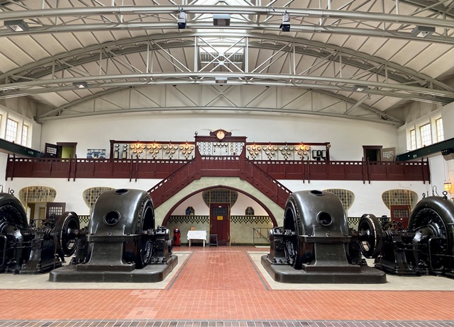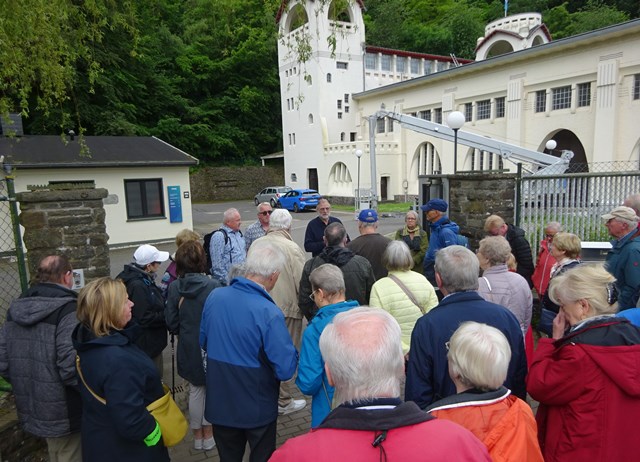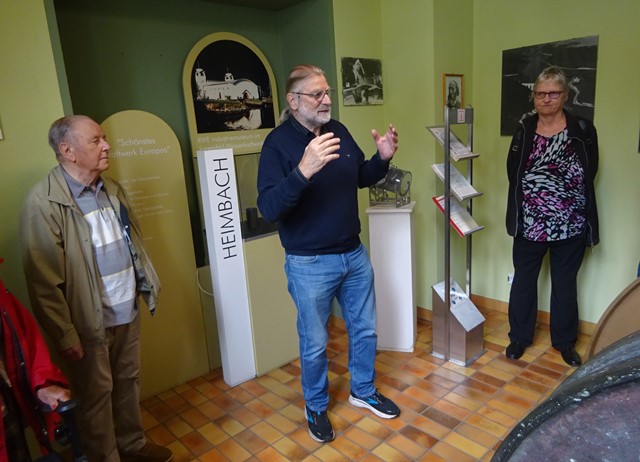 Das Wasserkraftwerk wurde Anfang des 20. Jahrhunderts zusammen mit der Urfttalsperre gebaut, von der es über ein Rohrsystem sein Wasser bezieht. Die Einweihung fand 1905 statt und es war zu der Zeit mit 12 Megawatt das größte Speicherwasserkraftwerk Europas. Es verfügte über 8 Turbinen, die die Generatoren zur Stromgewinnung antrieben. Noch heute wird hier mit 2 hochmodernen Turbinen Strom erzeugt. In einer kurzweiligen Führung wurden uns die alten Einrichtungen und Schaltanlagen gezeigt und die Vorgänge zur Stromerzeugung erläutertet. Im alten Büro des Vorstehers waren auch einige Zeitzeugen (Messgeräte, Telefone, Fernschreiber usw.) zu bestaunen. Den Abschluss bildete das Museum über die Entwicklung der elektrischen Haushaltsgeräte. Manches kam einem bekannt vor.