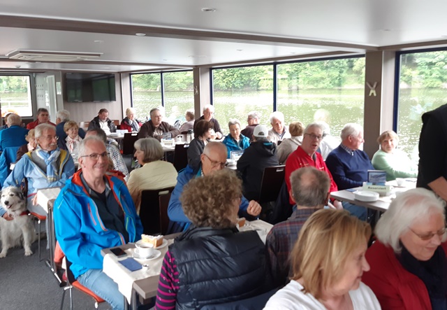 Zum Mittagessen fuhren wir weiter ins „Eifelhaus“ nach Einruhr, wo wir gut versorgt wurden. So gestärkt hatten wir etwas Zeit uns die Füße zu vertreten, ehe es um 14 Uhr auf das Schiff „St Nikolaus“ ging. Bei Kaffee und Kuchen machten wir eine Rundfahrt auf dem Obersee bis hin zur Staumauer der Urfttalsperre.