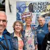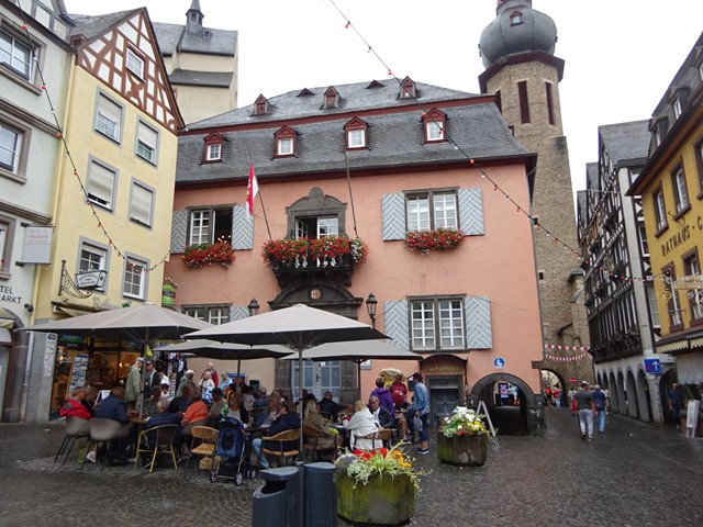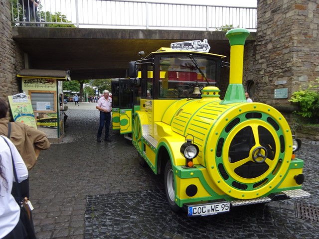 In Cochem angekommen, machten wir zunächst die Stadtrundfahrt mit dem Mosel-Wein-Express. Dabei erfuhren wir, dass Cochem die kleinste Kreisstadt Deutschlands mit lediglich 5.000 Einwohnern ist. Die Anfänge gehen bis auf die Römer zurück, die hier schon Wein anbauten. Nach ca. 30 Minuten hatten wir einiges über Cochem erfahren und waren am Startpunkt zurück.