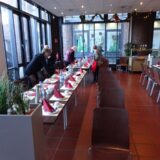Die Veranstaltung begann um 14:00 Uhr mit der Begrüßung durch Hermann-Josef Stephan. Er gedachte den in diesem Jahr verstorbenen Mitarbeitern des SBR Helmut Walterscheid und Siegfried Klädtke mit einer Schweigeminute. Anschließend gab er einen kurzen Rückblick über unsere Aktivitäten in diesem Jahr und einen Ausblick über das, was wir im nächsten Jahr bereits planen. Danach servierten die Bediensteten des Restaurants Kaffee, Kuchen und Stollen. Nun wurde viel erzählt und die Zeit verging wie im Fluge. Viele hatten sich darauf gefreut, hier alte Kolleginnen und Kollegen zu treffen und mit ihnen „schwaade zu künne“.